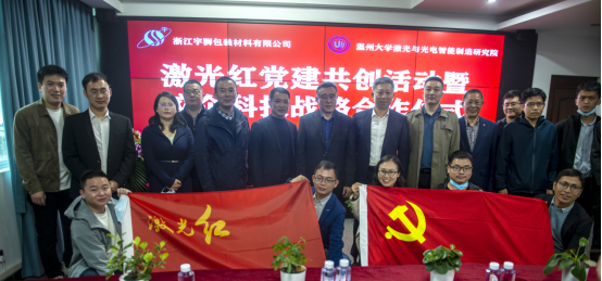 为深入贯彻党中央关于科技创新的决策部署,落实好创新驱动发展战略,并进一步加强新时代基层党支部建设,充分发挥党组织的战斗堡垒作用和党员先锋模范作用,探索高校、企业基层党建工作共创的有效途径,形成“资源共享、优势互补、相互促进、共同提高”的基层党建工作新格局,实现党建工作与业务工作的相融相促,3月31日上午,成人网 激光党支部和浙江宇狮包装材料有限公司党支部举办了“激光红党建共创活动暨校企科技战略合作仪式”。苍南县科技局副局长、双方相关领导、双方党支部党员代表和员工代表参加了此次活动。