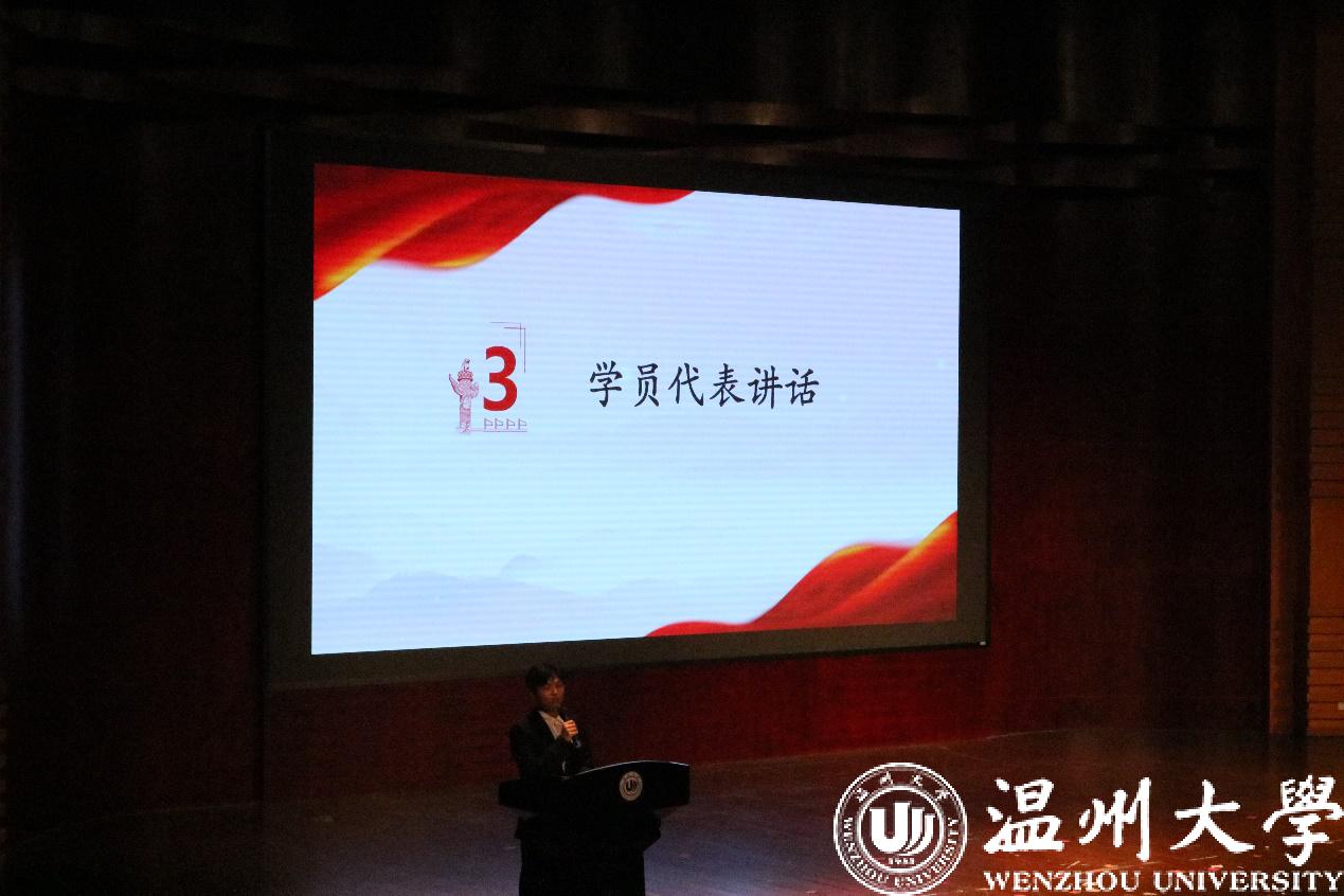 接下来,来自化学与材料工程学院的研究生曾鸽作为学员代表发言。他总结了自己在为期一周培训中所学到的内容与收获。并代表广大学员向组织做出承诺:将坚持不断提升自身的党性修养、始终保持与时俱进、实事求是,保持思想的先进性和纯洁性,积极参与志愿服务工作,在学习、工作岗位上,充分发挥党员的先锋模范作用,用实际行动践行入党时的誓言和承诺。