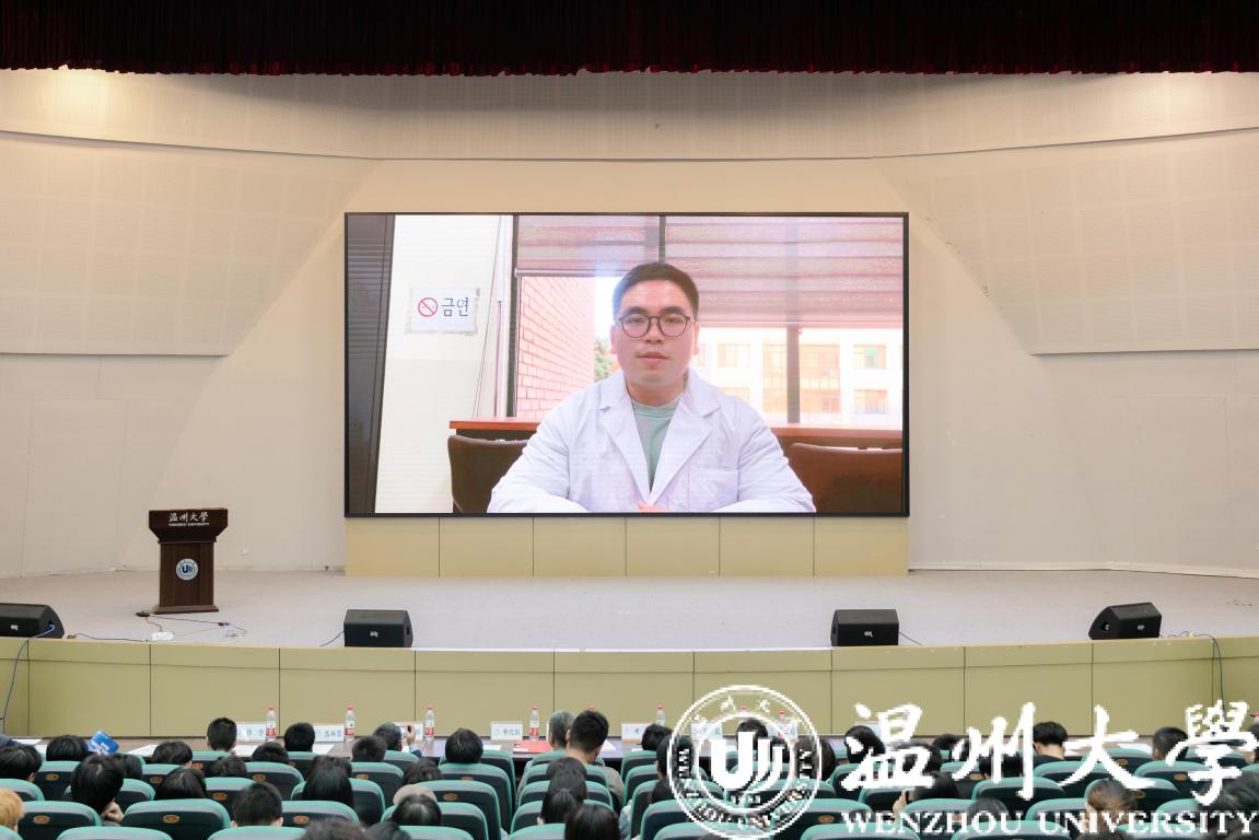 韩国全南大学优秀校友代表张鹏华、陈皓栋作报告。两位校友指出“科技之光”活动月是我院的特色活动,同学们要通过这个平台加强科技创新意识,进而提高科技创新能力。