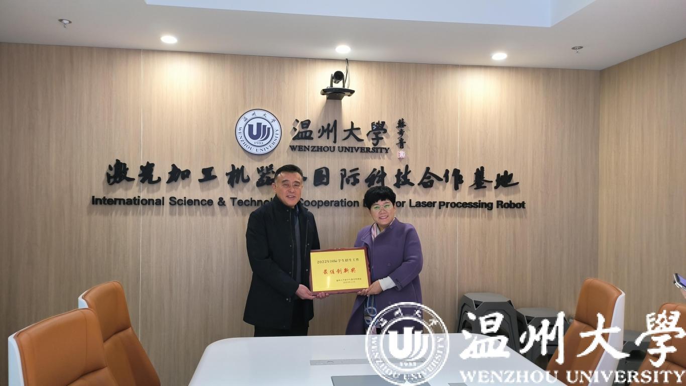 座谈会上,国际教育学院院长宋占美高度评价了激光基地对国际研究生招生工作的大力支持,希望将激光基地创新的管理措施和人才培养模式推广到全校,并代表学校和留学生教育与管理部向激光基地授予“2022年国际学生招生工作最佳创新奖”。