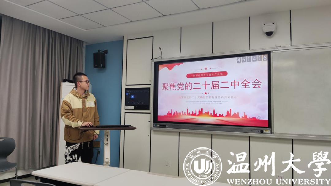 中国共产党第二十届中央委员会第二次全体会议于2023年2月26日至28日在北京举行,为传达党的二十届二中全会精神,我院本科生第二党支部于3月21日下午6:30在6B306开展了专题学习会。本次专题学习会由支部书记雷宏宇老师主持,支部党员与积极分子参加。