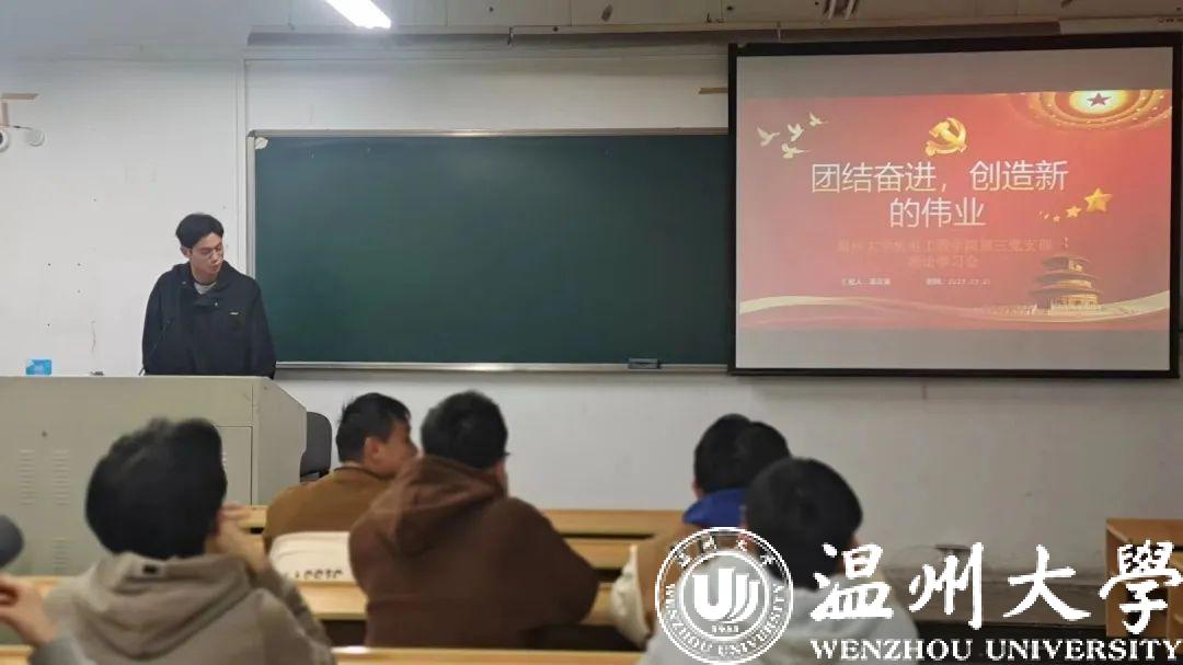 为深入学习贯彻党的两会精神,我院本科生第三党支部于3月21日晚上7:00在6b303开展了“团结奋进,创造新的伟业”的主题学习会。支部党员与积极分子们积极参与。