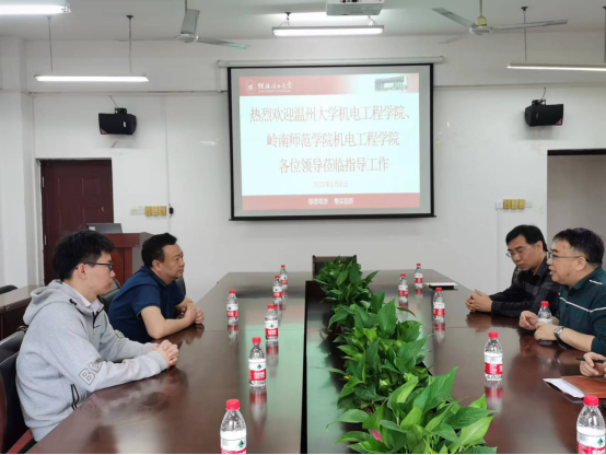 在桂林理工大学机械与控制工程学院,张烈平院长详细介绍了学院研究生教育和学科竞赛等方面的基本情况。双方就创新机制建设、构建“素质-技能-实践”创新创业课程体系建设等方面进行了交流。随后,向家伟院长一行走访了该校专业实验室、学生创新中心等部门。