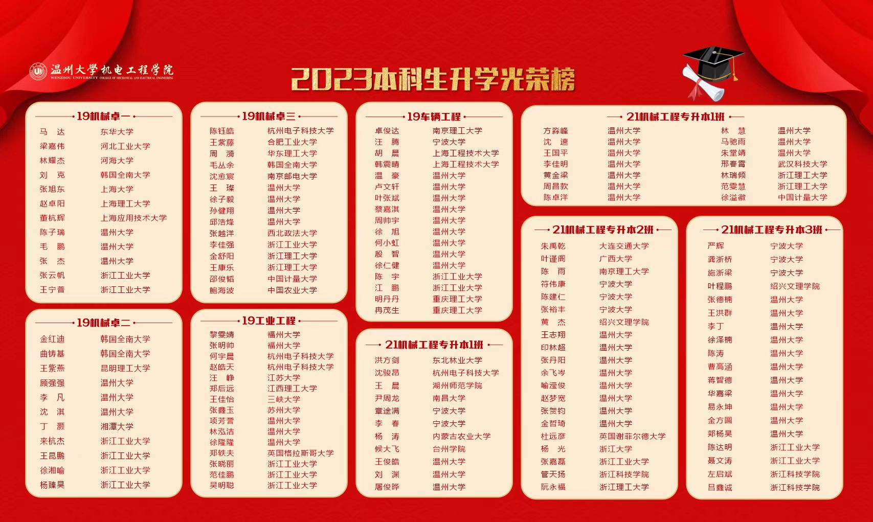 在鲜花盛开的六月,我院学子考研升学捷报频传!截至2023年6月12日,我院2023届本科生升学人数达134人,连续两年考研升学率突破40%。7个毕业班升学率超过35%,其中前三甲分别是21机械工程(专升本)1班(47.17%),19工业工程班(46.88%),19车辆工程班(43.59%)。