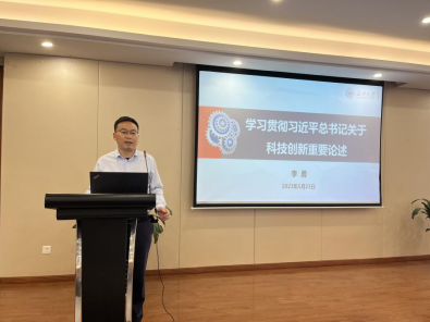 李勇副院长带领与会人员学习贯彻习近平总书记关于科技创新重要论述,解读省市科技创新体系建设工程相关政策。他指出,为实现高水平科技自立自强,提升国家创新体系整体效能,加快建设科技强国,学院要对照浙江省“315”科技创新体系建设工程重点任务,整合资源,突出优势,推动“学科-专业-平台-产业”创新协调发展。