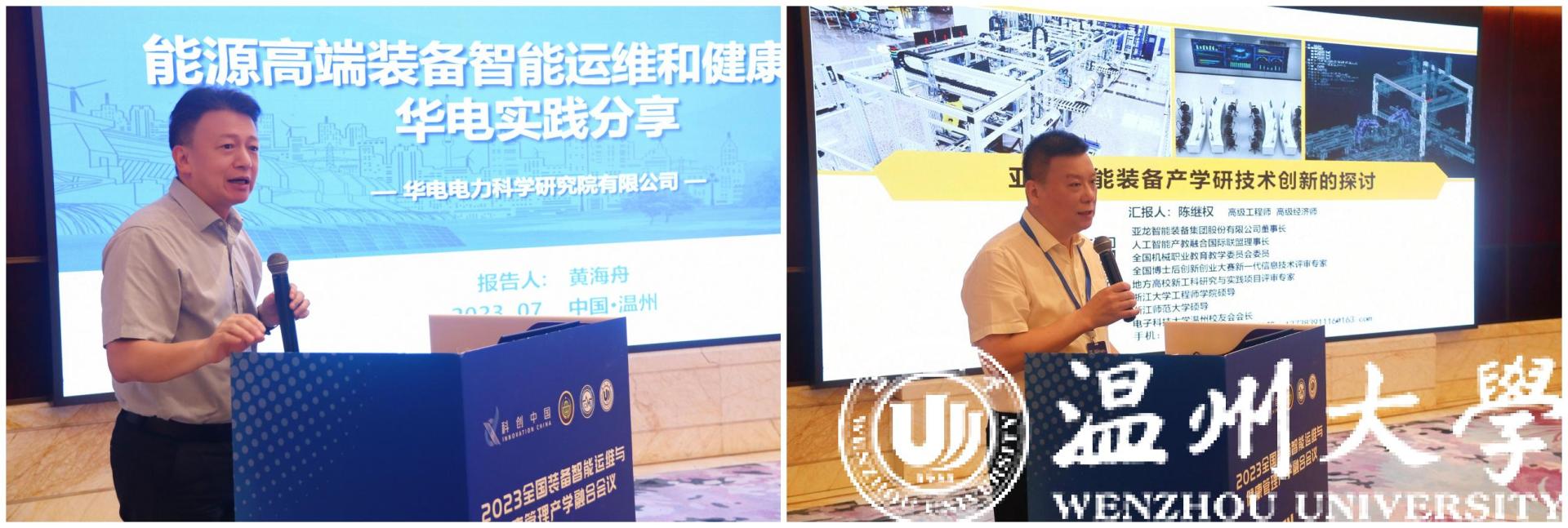 7月10日至12日,“科创中国”2023全国装备智能运维与健康管理产学融合会议在温州顺利召开。大会邀请了中国科学院、中国工程院顶尖人才多名。来自清华大学、北京理工大学、湖南大学、西南交通大学、上海交通大学、浙江大学、西安交通大学、北京航空航天大学、哈尔滨工业大学、华中科技大学、华北电力大学等数十所知名高校的专家,浙江大学温州研究院、兰州理工大学温州泵阀工程研究院、华电电力科学研究院、成人网 激光与光电智能制造研究院、成人网 平阳智能制造研究院等科研院所的科技精英,温州正泰集团股份有限公司、德力西集团有限公司、恒丰泰精密机械股份有限公司、亚龙智能装备集团股份有限公司、兴机电器有限公司等多家知名企业的领军企业代表,以及温州高校师生代表共250余人参加会议。
