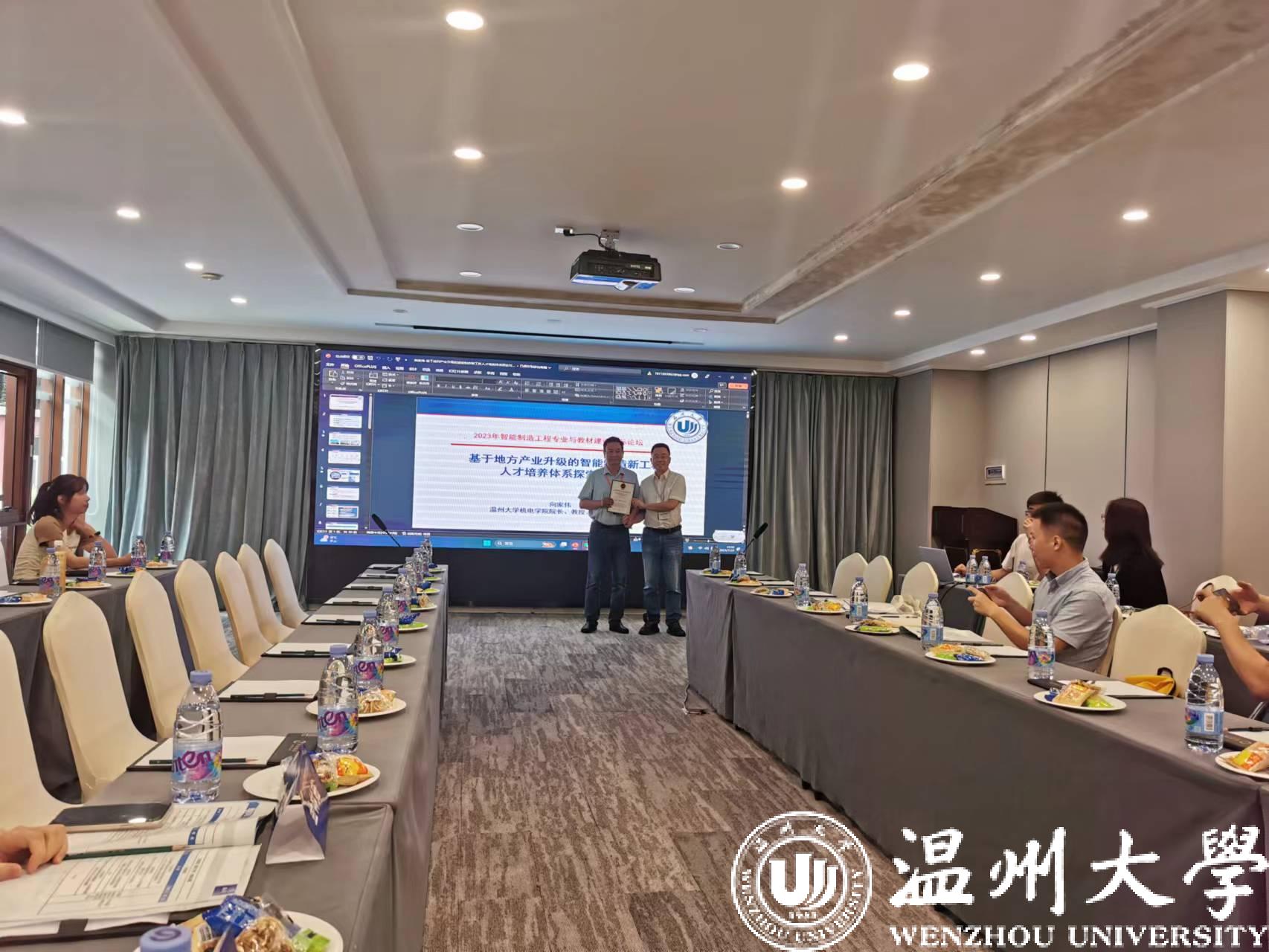 在随后召开的2023年智能制造工程专业与教材建设国际会议上,学院院长向家伟教授受邀做了“基于地方产业升级的智能制造新工科人才培养体系探索与实践”的专题报告,分析了地方产业对地方高校智能制造人才培养的需求,结合成人网 数智化机械类人才的培养实践,提出了包含跨学科课程体系、跨界融合实践模式、政产学研协同育人机制的智能制造人才培养体系和建设规划。