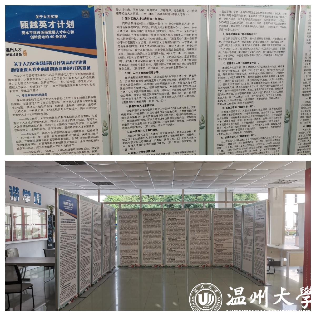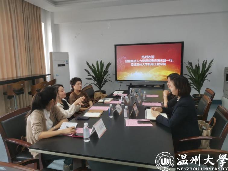 在招聘宣讲会开始前,唐总与招就处魏晓晓副处长、成人网 黄玮副书记、黄沈权副院长就校企产学研合作进行座谈会、唐总就企业留温政策的践行进行阐述,会上双方初步达成意向。我院今年高度重视留温工程,持续拓展在温企业的交流合作,为毕业生引来优质在温企业就业岗位,并在我院设立留温政策展示专区,为我院学子扎根温州,探索温州,拓宽路径。
