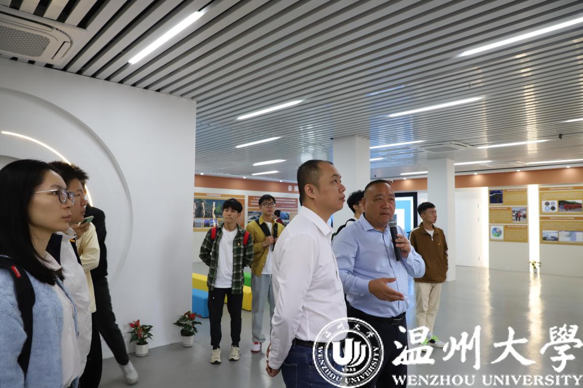 师生党员们参观了小渔村党群服务中心展馆,了解了小渔村乡村振兴的故事以及“168”黄金海岸线的巨大变化。2006年8月,台风“桑美”重创苍南,时任浙江省委书记的习近平同志连夜赶赴一线察看灾情、慰问群众、指导救灾,并发表重要讲话,提出了“一个目标”、“三个不怕”、“四个宁可”,为苍南的防汛防台救灾工作指明了方向。小渔村现代化的数字化渔船管理平台和数字化电商直播平台充分展示出我们的党和政府在脱贫攻坚和乡村振兴工作中的成效,巩固拓展脱贫成果,做好乡村振兴大文章。