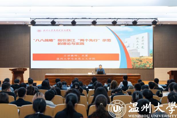 开班典礼结束后,成人网 马克思主义学院关震老师进行本期培训的第一场主题为《“八八战略”指引浙江“两个先行”示范的理论与实践》的专题讲座。关老师重点强调了以习近平新时代中国特色社会主义思想为指导,在高质量中奋力推进中国特色社会主义、共同富裕先行和省域现代化先行,分析了“八八战略”指引着“两个先行”的内在逻辑,并着重说明“八八战略”指引着温州“两个先行”的发展,主要介绍了浙江省第十五次党代会会议内容和意义,强调了“两个先行”是浙江省域发展的鲜明特征,是改革开放以来历届省委鲜明的战略指引。希望同学们贯彻落实浙江省第十五次党代会的实践要求,让浙江成为省域现代化先行者,为全国乃至世界探路!