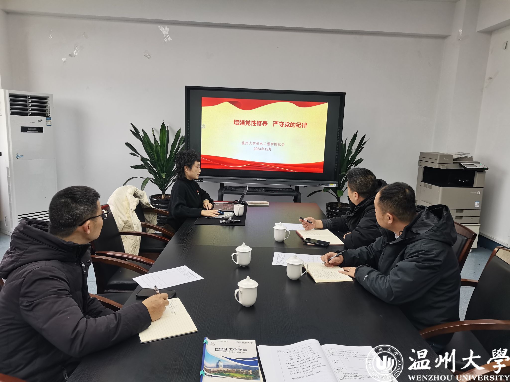 黄玮同志传达了校纪委近期工作要求,并以“增强党性修养 严守党的纪律”为主题,带领大家学习了12月8日中共中央政治局会议精神,仔细解读十八大以来《中国共产党纪律处分条例》的修订情况。会议还总结了2023年学院纪委工作,并结合元旦春节即将来临之机,开展节前廉洁提醒的案例警示教育。