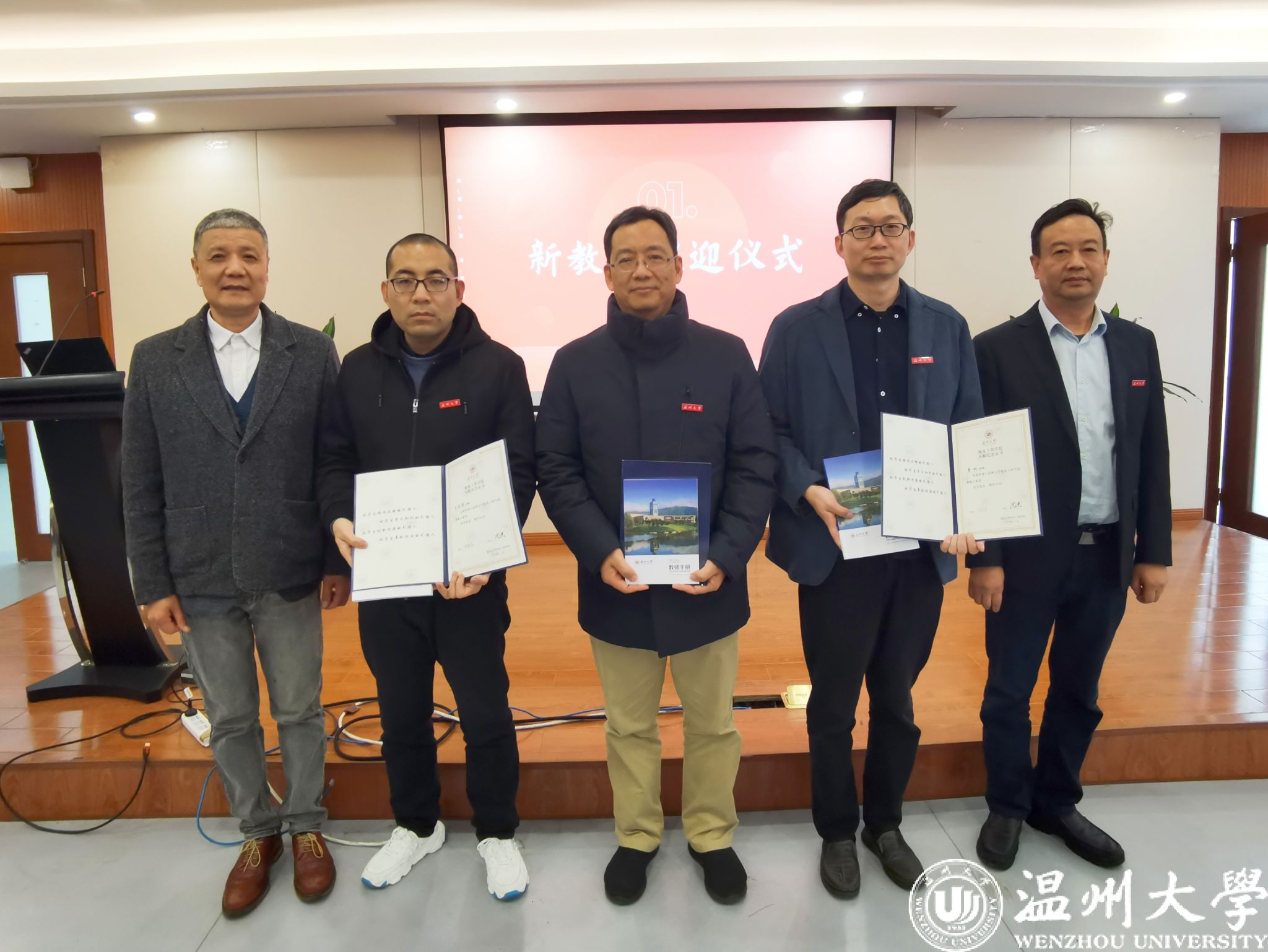 会上,学院为近期入职的新教师举行了入职欢迎仪式。周荣书记、向家伟院长为新教师们发放了入职纪念证书、《教师手册》等物品,并帮老师们戴上校徽,欢迎他们正式成为温大成人网 的一员。