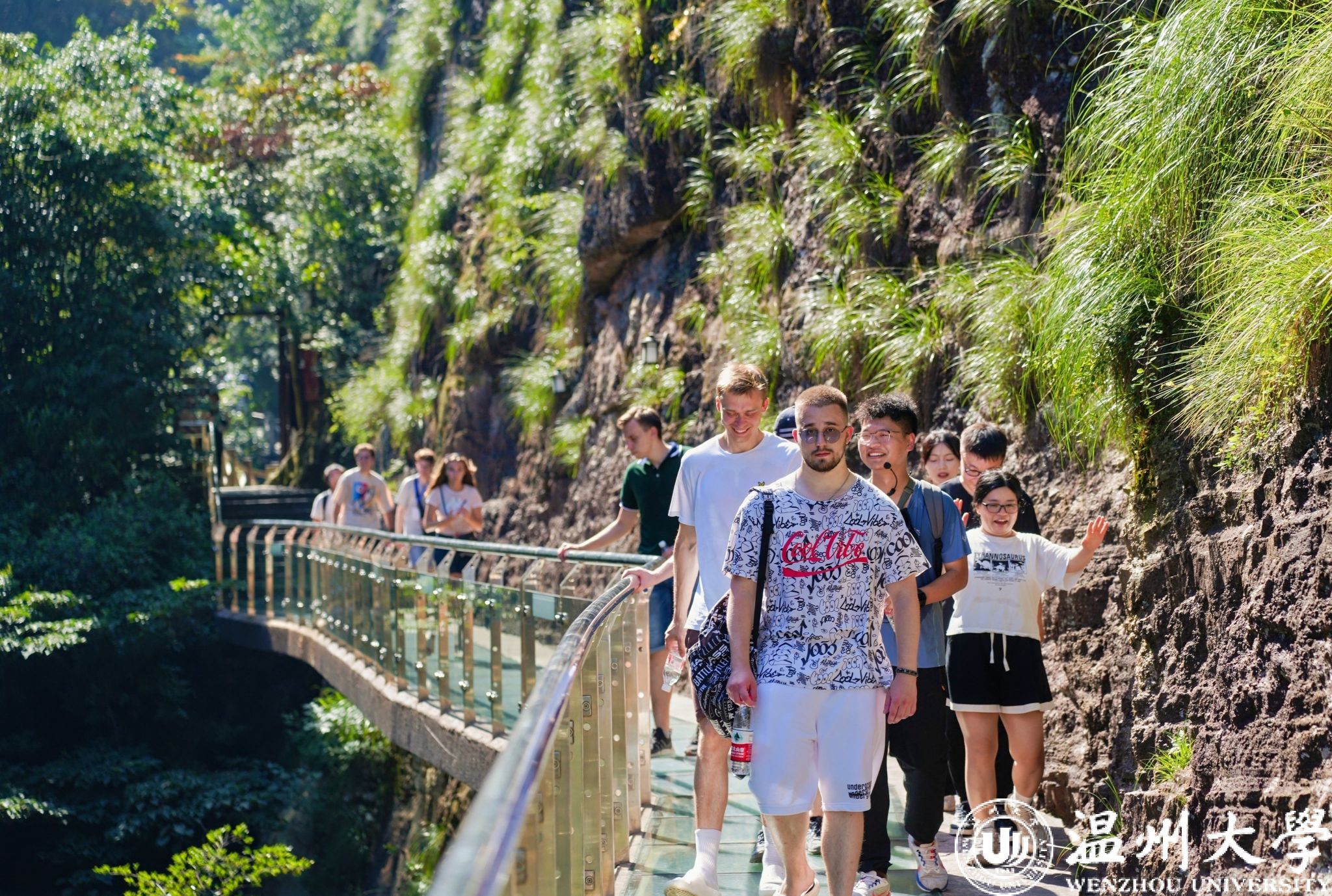下午,青年代表们来到著名的雁荡山风景区,开始了一场与大自然的亲密接触之旅。首先,欣赏了灵岩景区峻峭的山峰和幽静的谷地。灵岩景区以其奇特的岩石景观和清幽的环境而著称,大家在这里流连忘返。接着参观了卧龙谷,观看了惊险刺激的高空飞渡表演。表演者在高空钢丝上行走、跳跃,令人惊叹不已。