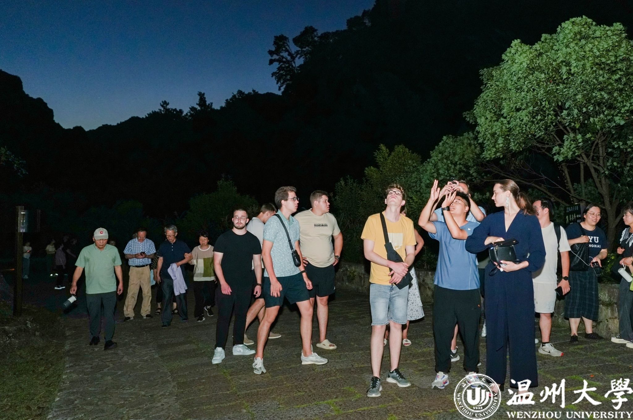 夜幕低垂,大家游览了灵峰景区的夜景。微光中峰峦叠嶂,宛如仙境,中俄青年漫步其间,沉醉于这份宁静与神秘,感受自然与人文的完美融合。