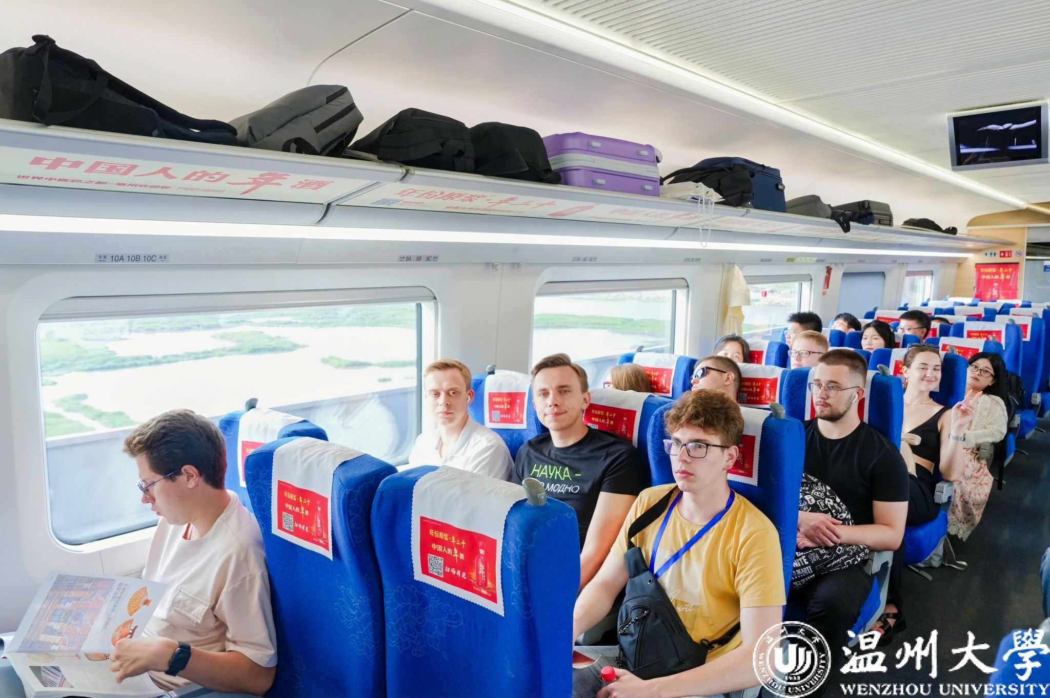 2024年7月5日,俄罗斯伏尔加河沿岸联邦区青年长江行温州站活动进入了第五天。清晨青年代表们从雁荡山乘坐高铁前往杭州在高速列车上,他们亲身体验到了中国高铁的快捷和舒适。高铁以其高效、平稳的特点,让大家对中国的基础设施建设赞叹不已。