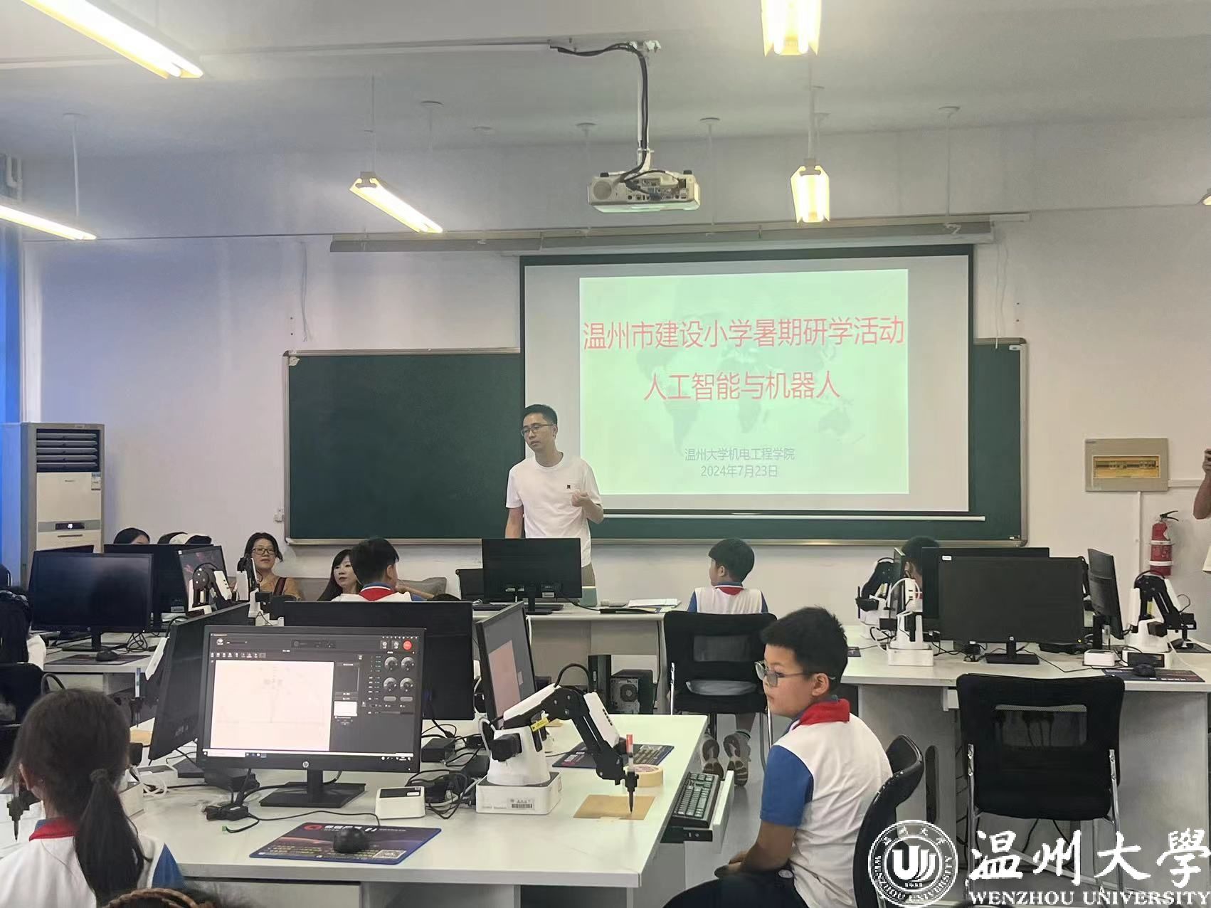 7月23日,成人网 开展“人工智能与机器人”主题科普活动,以此来宣传和普及公众感兴趣的科学知识,提升公众对人工智能的认知与理解。来自温州市建设小学的20余名师生和家长参与此次活动。
