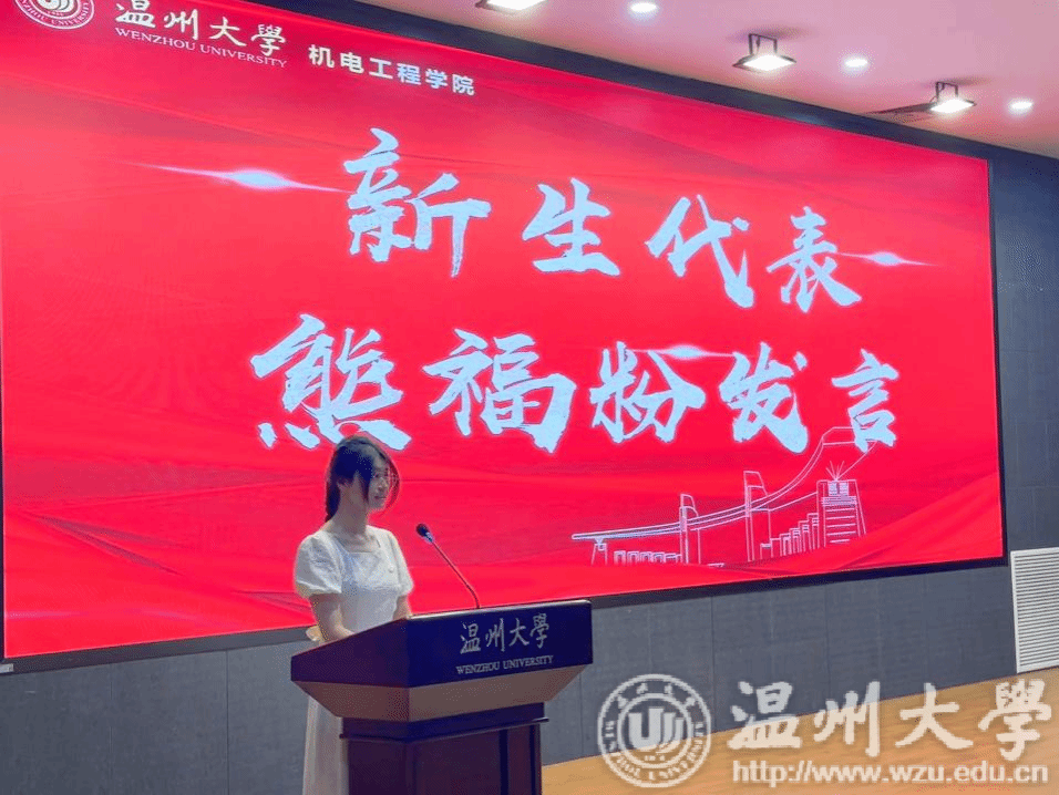 新生代表熊福粉表示研究生生活是一个新起点,希望大家都能在这片沃土上,以梦为马,不负韶华,以“新生代”的“一马当先”引领新质生产力的“万马奔腾”,用青春和智慧共同在追求创新生产力的竞争中彰显“新生代”的责任与担当。