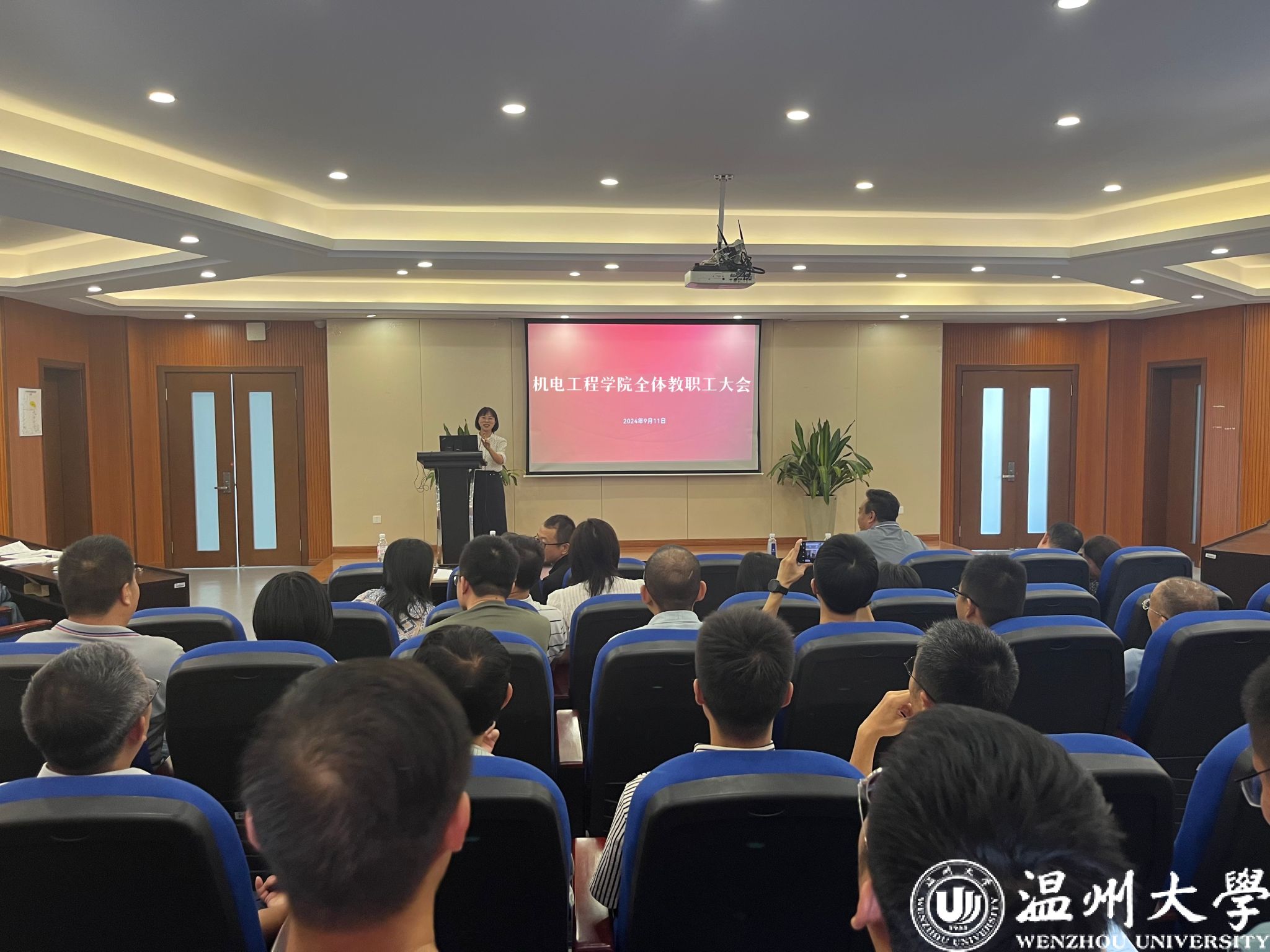 向家伟院长作学院新学期重点工作部署。他回顾了暑期学院在制度规范化建设、实验室搬迁、博士点和浙江省重点实验室申报等方面工作,广大教职工“有暑无假”奋战在教学科研一线,为学院学科专业建设与人才培养水平贡献力量,展现了新时代机电人担当作为、良好工作风貌。面对新的发展任务,他着重就科研项目申报、学科建设、人才培养等方面工作进行了部署,强调全体教职工工作要有勇攀高峰勇气,凝心聚力、团结协作共同排除万难、加油工作、健康生活,为学院各项工作迈上新台阶、取得新成效、实现新突破贡献智慧和力量。
