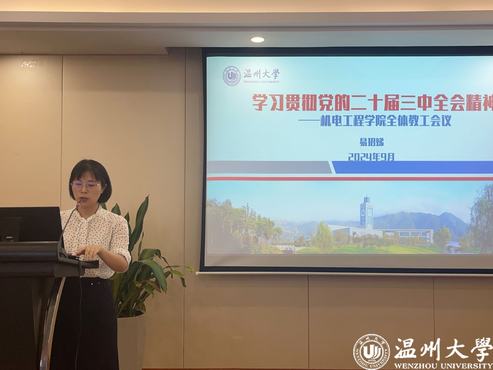 易招娣书记传达学校贯彻党的二十届三中全会精神,她指出,要积极响应国家统筹推进教育科技人才体制机制一体改革要求,给予教育科技人才全方位保障、全过程支撑,不断提升全体教职工的凝聚力、向心力和奋斗力,凝心聚力、内外联动、全员协同,扎实落实新时期重点工作,助力学院大建设、事业大发展。