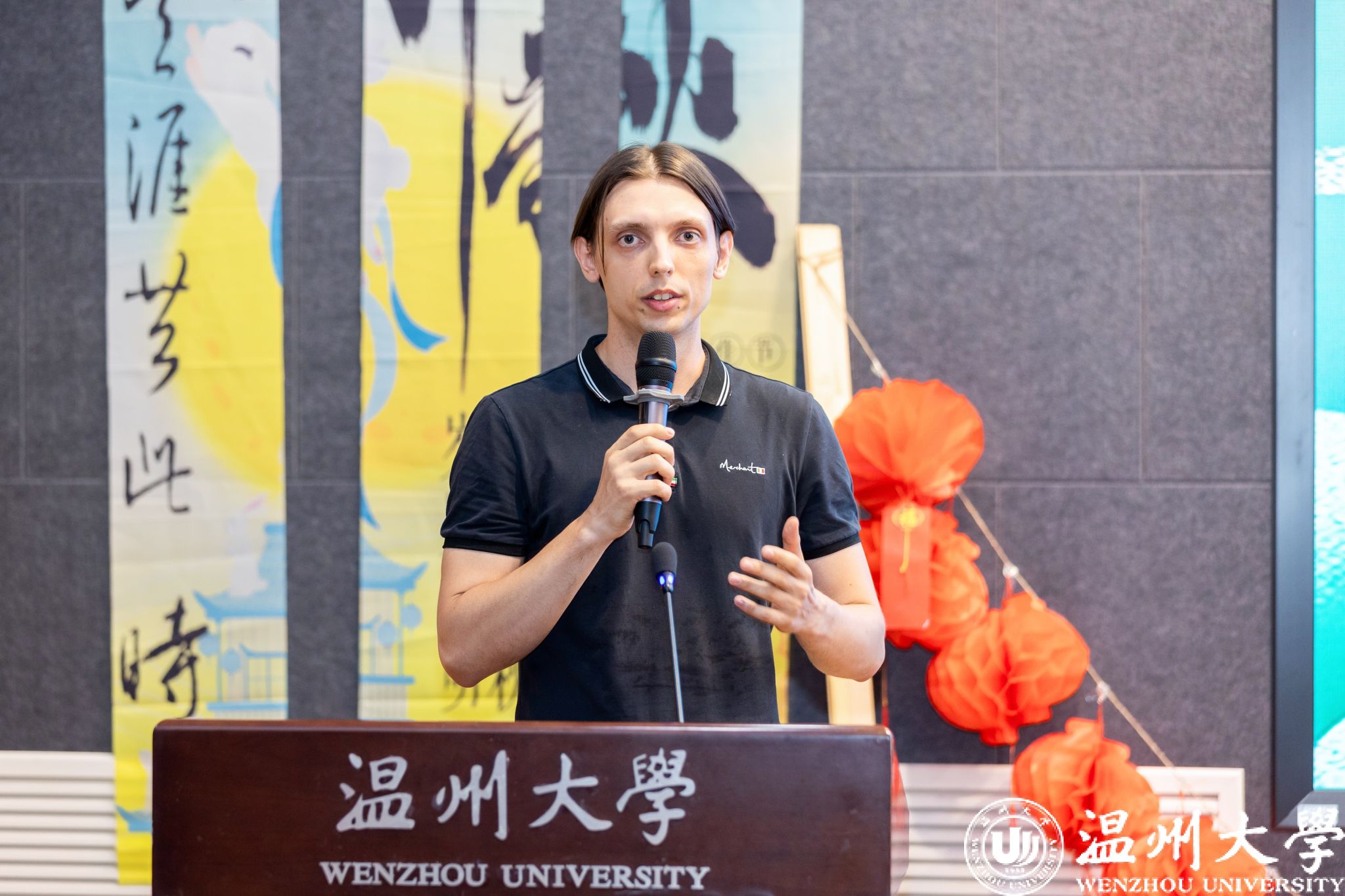 活动亮点纷呈,音乐学院张若琳老师的《醉了千古爱》带领大家穿越千年,感受古典爱情的韵味;石嵩言用字正腔圆的普通话与Annan带来的诗朗诵《中秋之韵》,演绎出中秋的诗意与远方,同时共同推广普通话,为普通话的推广做出了表率。猜灯谜、抽奖刮刮乐等互动环节,不仅增添了节日的趣味性,更让参与者在欢声笑语中收获惊喜。