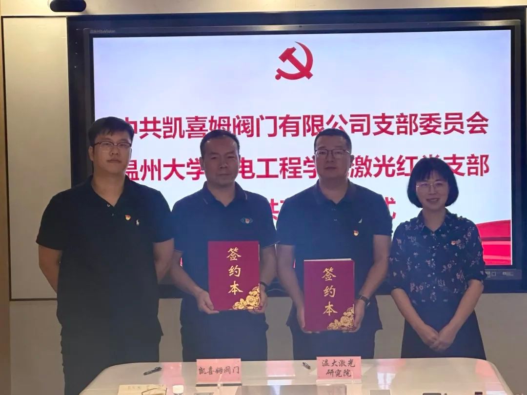 为全面贯彻新时代党的建设总要求,围绕温州市委“强城行动”战略部署,共同发挥校企基层党组织和党员作用,构建“校企地”党建共建工作新格局。10月18日,成人网 激光红党支部与凯喜姆阀门有限公司就党建共建与产学研合作达成了深度共识,成功举行了签约仪式。