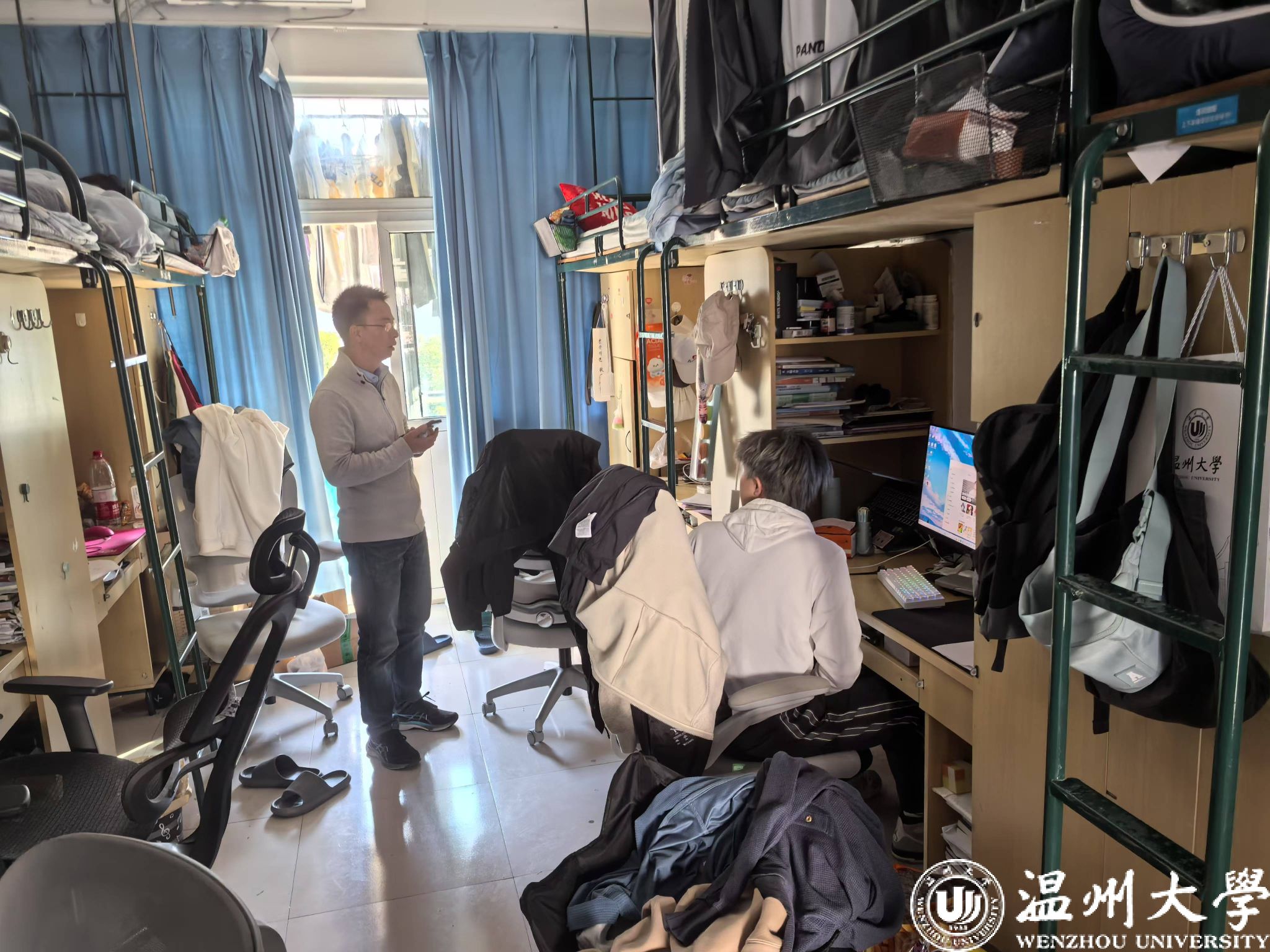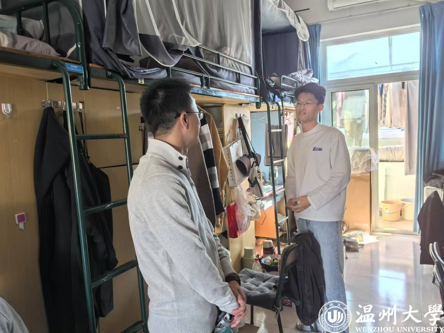 当天,成人网 副书记方建晓、辅导员林博远对本院E4楼栋所有宿舍进行了细致而严格的检查。检查过程中,检查组对宿舍卫生情况、电器使用安全、消防设施完备性、门窗安全等方面进行了重点查看,对发现的卫生问题及安全隐患进行了详细记录,并要求立即整改。