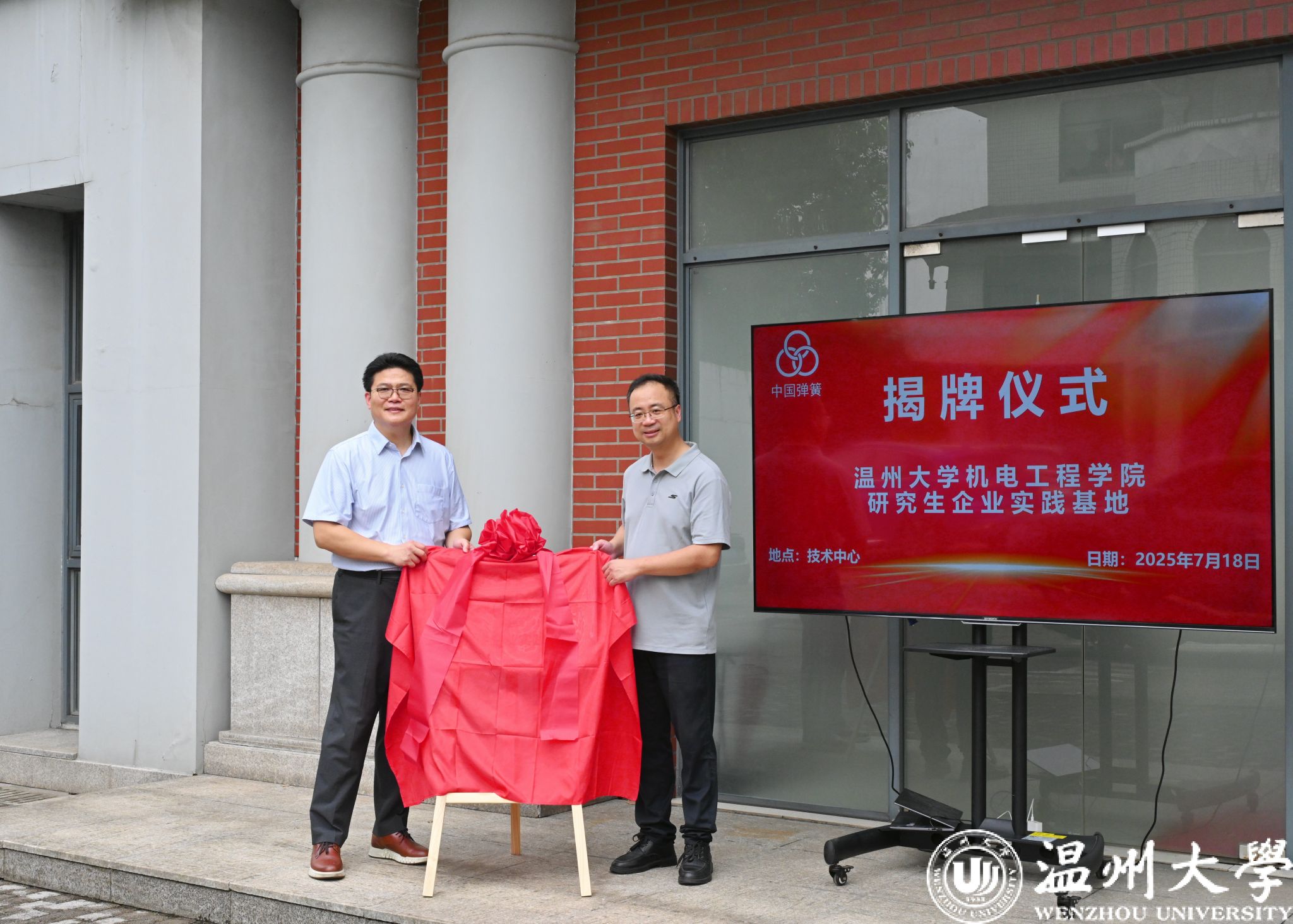 7月18日,成人网 与上海中国弹簧制造有限公司共建研究生企业实践基地揭牌仪式在上海隆重举行。学院代表、基地负责人周晨副教授,上簧厂总经理张镓博士、研发中心技术总监王怀庆、制造部业务总监杨利军等企业方代表,首批入驻基地实践的研究生,共同参加了揭牌仪式。