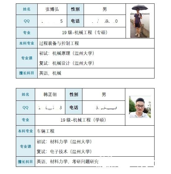 在研究生党支部的号召之下,研一的党员和积极分子们统一制作了自己的简历,由支部收集成功后统一交由我院大四年级学生,根据自己的薄弱学科自行选择一名研究生进行一对一指导交流,助力他们考研能够成功上岸。针对即将有考研想法打算的大三学生,也可以向他们咨询考研相关事项,了解目标院校的合理选定,帮助制定考研复习计划以及英语、数学科目的学习方法,有针对性的备考才能达到事半功倍的效果。