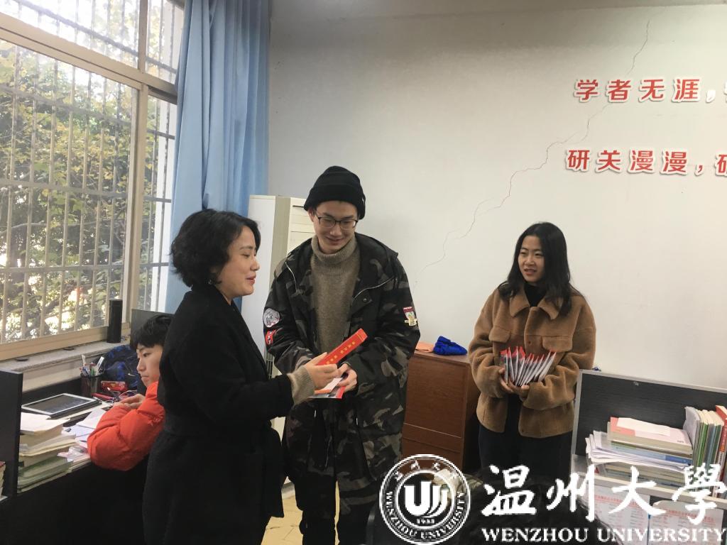 2019年12月13日中午,我院党委副书记黄玮、学生科辅导员郑妤、徐欢来到考研自习室亲切慰问了正在刻苦复习的考研学子,并送上学院精心准备的“三份”大礼,有印刻“金榜题名”字样的状元糕,希望大家都能够考上心仪的学校,开启新的人生旅途;有“连中三元”的考试套装,祝福大家旗开得胜,一举高中;有学弟学妹书写的“续航加油”祝福卡,字里行间流露出对学长学姐满满的“爱”与期待。