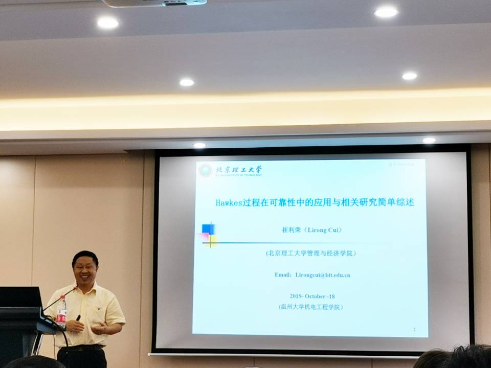 10月18日上午,国家自然基金管理科学专业评审组专家、北京理工大学管理与经济学院崔利荣教授在学院6B309学术报告厅为学院师生做了一场题为“Hawkes过程在可靠性中的应用与相关研究简单综述”的学术讲座。本次讲座由成人网 院长周宏明主持。