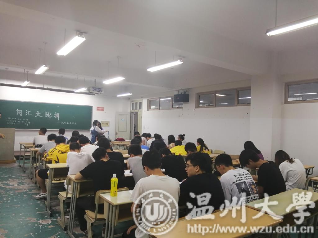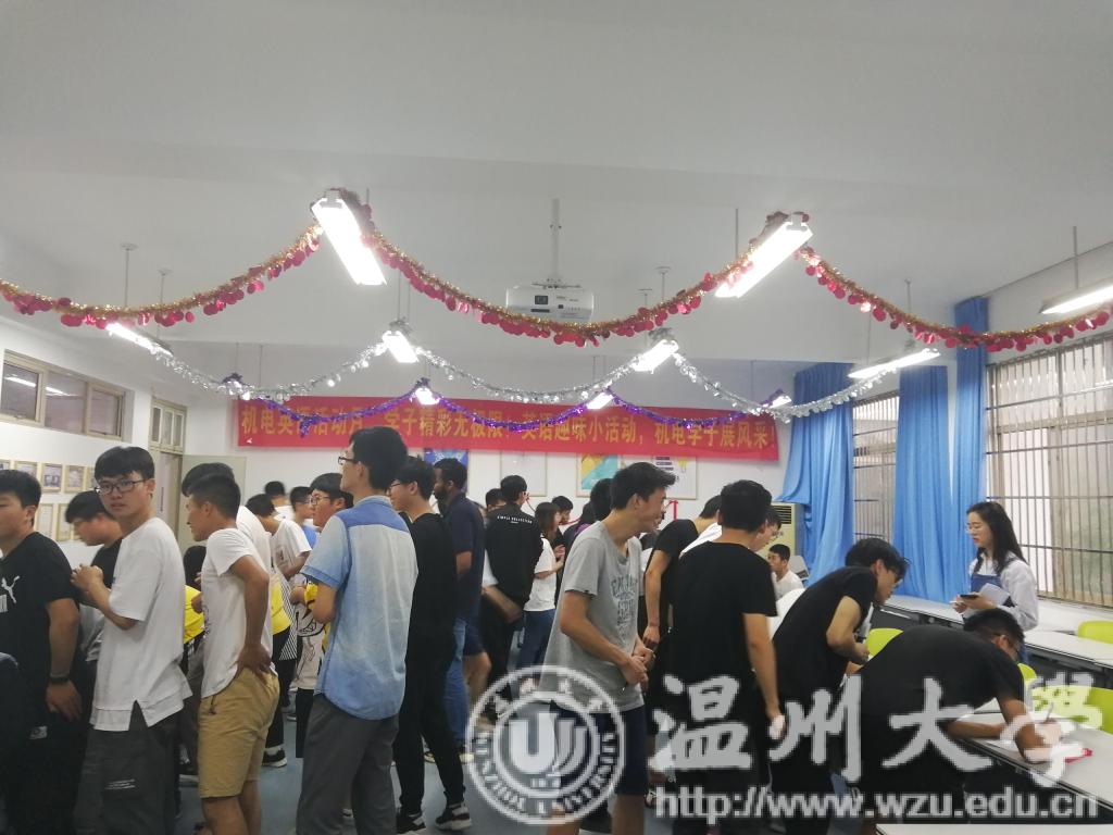 2019年5月18日,为了提升机电学子的英语水平,创造良好的英语学习氛围,进一步助力考研,促进学风,我院学生在B201、B204教室开展了英语趣味比赛——我爱记单词。本次比赛由18级年级委员会策划承办,我院全体学子积极报名参加,总计报名10余支队伍,值得一提的是我院的外国留学生也积极参与了本次比赛。