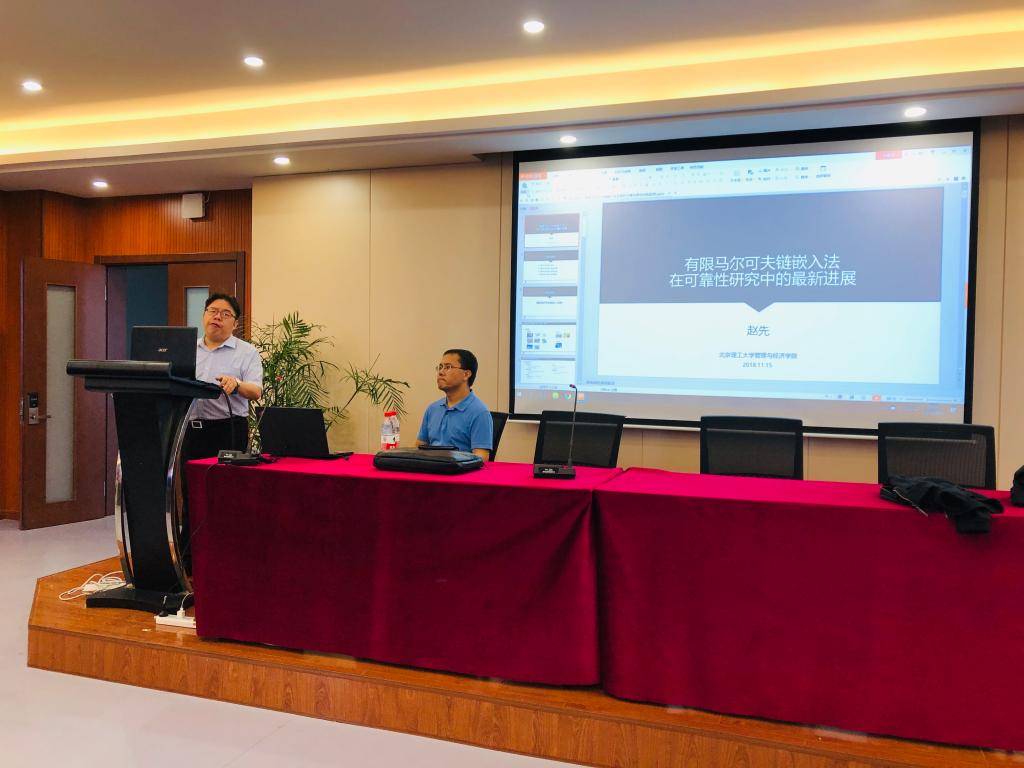 2019年4月26日上午,北京理工大学管理与经济学院赵先教授在成人网 6B309为成人网 师生带来一场题为“有限马尔可夫链嵌入法及其在可靠性研究中的最新进展”的学术讲座。成人网 院长周宏明教授,教师代表庞继红副教授、綦法群博士及2018级硕士研究生参加。