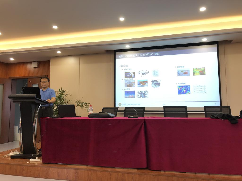 赵先教授首先为大家讲述了有限马尔可夫链嵌入法的发展趋势,并从树形或网络的可靠性分析、高维系统建模和可靠性分析、非马尔可夫相依情况下的可靠性分析、重要度研究、有限马尔可夫链嵌入法运算复杂度五个方面为现场师生进行了详细分析。随后,他为大家介绍了有限马尔可夫链嵌入法的最新应用,通过具体实例分析了“两态的启动验证试验模型”、“具有平衡调节运行机制的平衡系统”和“以失衡为失效准则的平衡系统”,简洁明了地说明了分析步骤和关键点,层层分析,逐步深入。