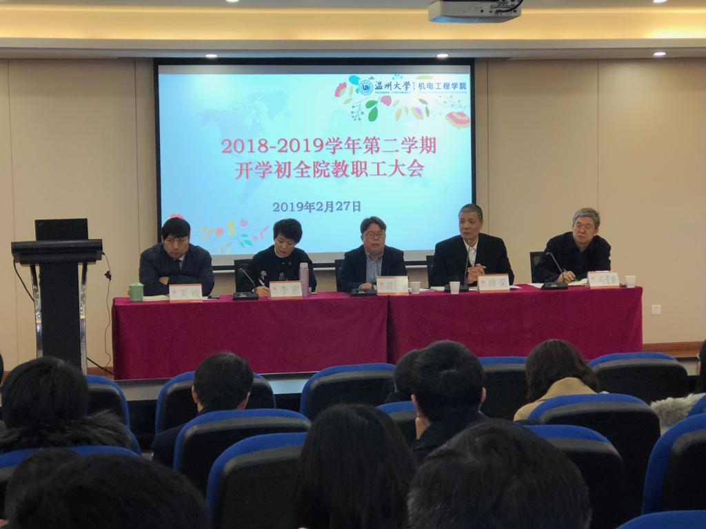 2019年2月27日下午,成人网 在6B309新学术报告厅召开2018-2019学年第二学期开学初全院教职工大会。学院领导班子、全体教职工参加了会议。会议由周荣书记主持。
