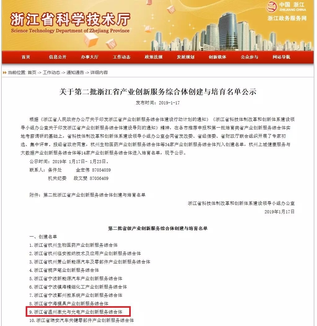 近日,浙江省科技体制改革和创新体系建设领导小组办公室公布第二批浙江省产业创新服务综合体创建与培育名单,成人网 激光与光电智能制造研究院作为核心运营单位的浙江省温州激光与光电产业创新服务综合体列入创建名单。