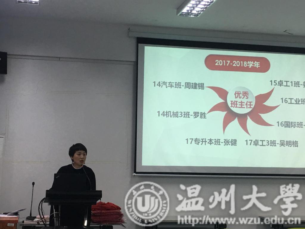 经主持人一番开场白后,周荣书记对本学期班主任工作给予充分肯定,周书记提出全院学生的安全稳定是开展学院各项工作的基础。他通过优秀班主任的事迹明确班主任肩上的责任,希望班主任能够做学生的思想引领者,关心学生的思想动态和学业、生活情况,加强班团建设,助力学生成才成长。姜锐副院长带领参会的班主任分析了2018年毕业一年后、三年后职业发展状况和人才培养质量调查结果,通过分析看清目前我院各专业在评选过程中的优劣势。强调每年的调查结果对于学院的发展意义影响深远。希望班主任高度重视,群策群力,助理学院人才培养。李密副书记通报了本年度优秀班主任、校优良学风班、院特优特色班集体名单。并根据学院班主任津贴分配方案对在班主任工作中表现出色的老师进行奖励。最后,周宏明院长总结发言,他指出班主任工作任重道远,就业质量调查工作离不开班主任的辛勤付出,希望各部门各班主任通力合作,争创佳绩。