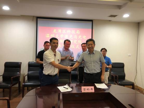 9月30日下午,成人网 激光与光电智能制造研究院和龙湾区人民政府正式签署温州激光与光电产业创新服务综合体共建协议。龙湾区副区长余安江主持此次签约仪式,研究院院长马光和龙湾区科技局局长朱智猛代表双方签约。成人网 副校长薛伟、成人网 院长周宏明、区府办负责人等参加此次签约仪式。