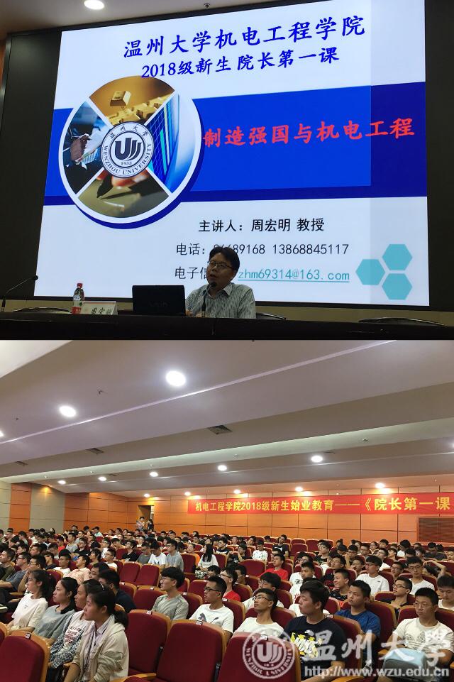 为帮助新生了解和适应大学的学习生活,激励学生们努力奋进,2018年9月13日8:30,成人网 “院长第一课”新生始业教育专题讲座《制造强国与机电工程》主题报告在岩松堂雁山厅进行。学院院长周宏明给2018级全体新生上了大学第一课。