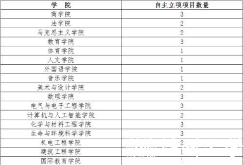 3、综合考虑“挑战杯”历年成绩、学校高峰学科建设,酌情给予各学院不等数量的自主立项项目数量,详见下表。
