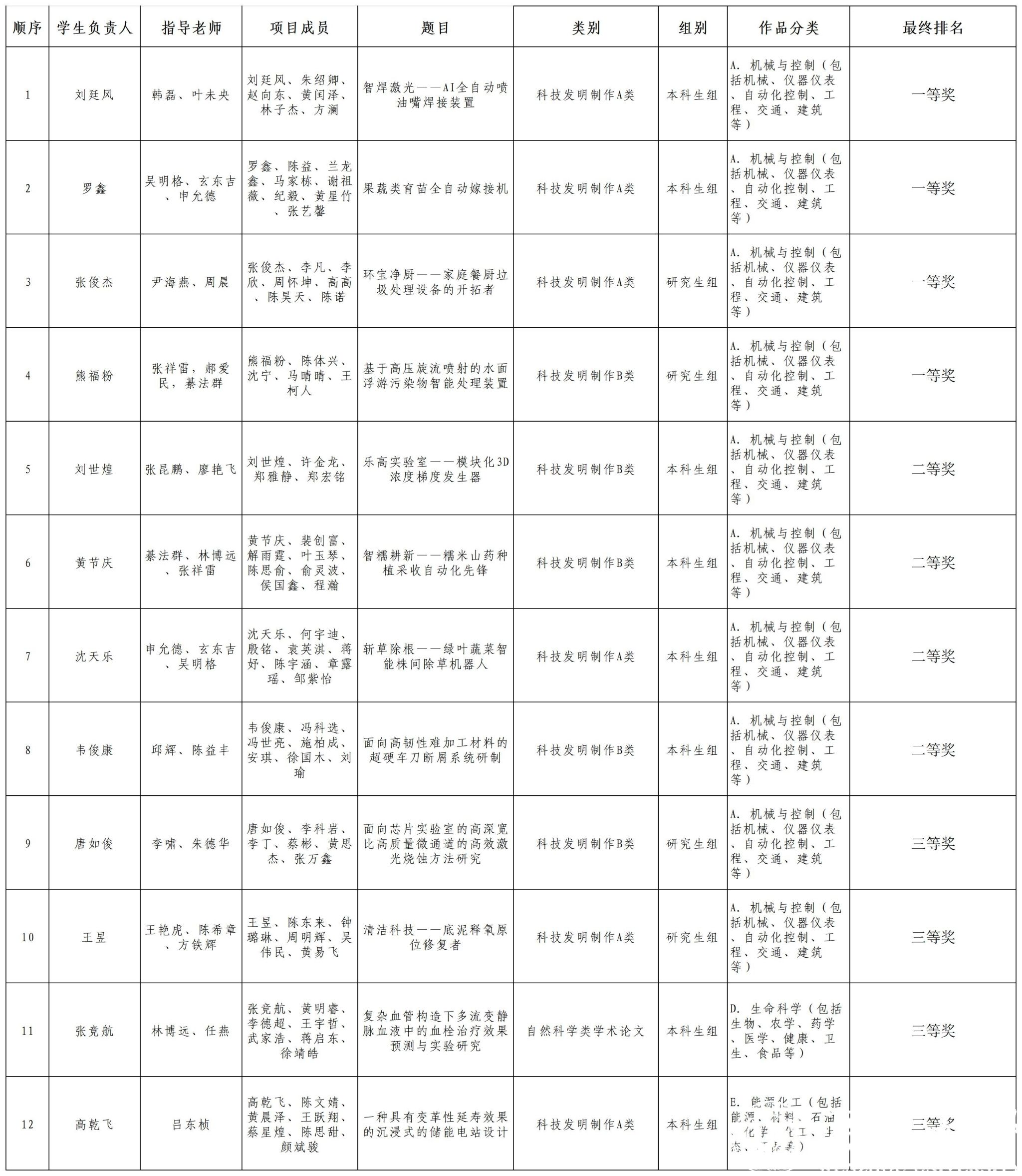 经过校外专家打分评比,共评出一等奖4项,二等奖4件,三等奖4件,具体名单见附件。