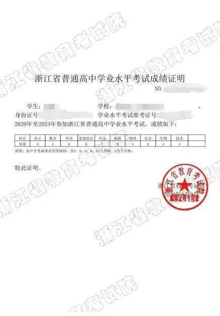 如果能在网上查询并打印,请一定到毕业高中,请学校出具学业水平考试成绩单(或者会考成绩单)并加盖学校公章后,再去公证处公证翻译。(可参考下图示例)注意:只是网站截图或者网站下载的无学校公章版本不可以!