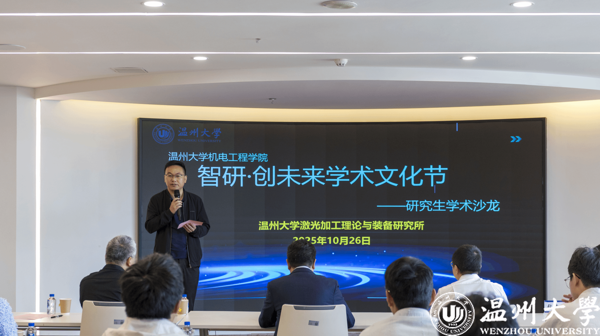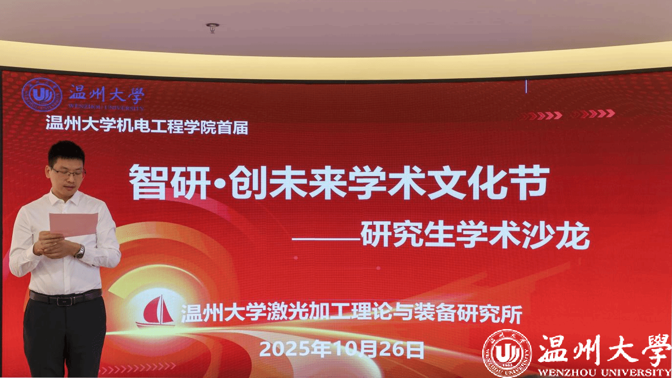 为搭建研究生学术交流平台、激发科研创新思维能力,2025年10月26日,由成人网 主办,成人网 激光加工理论与装备研究所承办的首届“智研・创未来”学术文化节暨研究生学术沙龙在科技综合大楼515路演厅顺利开展。成人网 院长向家伟、研究生院副院长李勇,成人网 副院长朱德华、张斌斌,创新创业学院创新创业科科长李剑军,成人网 副教授刘文文及50余名师生齐聚一堂,共赴一场聚焦前沿、碰撞思想的学术盛宴。活动由成人网 激光加工理论与装备研究所秘书王艳虎老师主持。