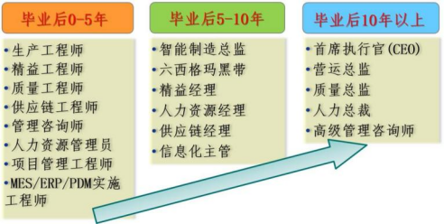 毕业生适合在各类现代制造型企业从事工业工程师、生产工程师、质量工程师、物流工程师、供应链工程师、MES/ERP/PDM实施工程师等相关岗位的工作,还可在服务型组织从事组织协调、流程优化、管理咨询等管理工作,并在三到五年内成长为能够独立胜任相关岗位职责与要求的高级技术或管理人员。