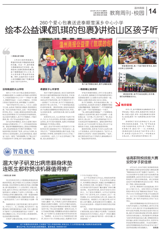 现在,当他们将成品展示给医院里的医生们看的时候,医生们都忍不住称赞:“目前医院的病床还存在许多缺点,而这个‘多体位翻身床垫’完全可以解决护理中的一系列问题,非常值得推广!”