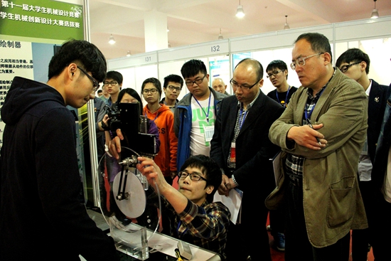 本次大赛的作品主要分为教具和教室使用设备两类。经实物模型评审、理论评审和答辩环节的综合评选,评出若干一、二、三等奖作品,其中获奖的优秀作品将代表我省参加7月下旬在东北大学举行第六届全国大学生机械创新设计大赛。