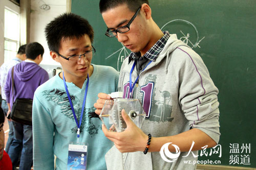 人民网温州4月27日电 全自动升降自擦无尘黑板、机器人助教、多功能激光笔、机器人助教……这是多少学生的梦中课堂。昨天上午,浙江省“合兴杯”第十一届大学生机械设计竞赛在成人网 举行,把梦中课堂变成现实。