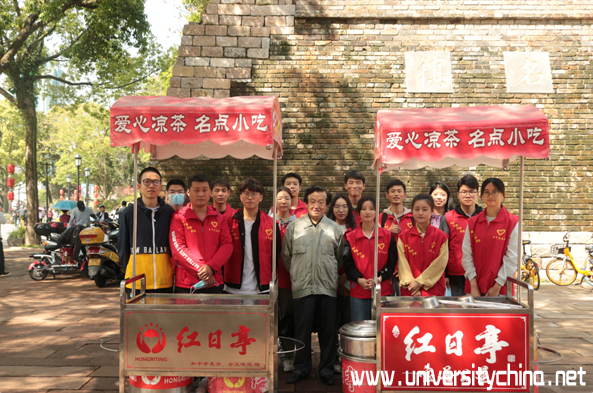 活动当天,在学院辅导员史凤娟、雷宏宇老师的带领下,10名预备党员和4名志愿者来到温州著名公益服务组织——红日亭。在与阿姨们的热情交流后,了解到当天的主要工作:推着红日亭特有的装有“红枣银耳羹”和“茯苓茶”的红色小车前往镇名广场、公园路街道等地向警察叔叔、环卫工人、过往的行人等免费派送。派送结束后回到红日亭,打扫干净红色小车和保温桶。在活动中传播“红日亭”的暖心善意,体现机电学子的爱心之举。