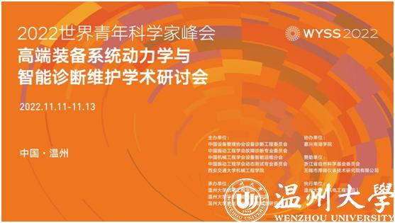 11月12日,2022年世界青年科学家峰会高端装备系统动力学与智能诊断维护学术研讨会(The Seminar On System Dynamics And Intelligent Diagnosis And Maintenance Of High-End Equipment)在温州开幕。来自浙江大学、西安交通大学、电子科技大学、华中科技大学、西南交通大学和韩国、印度等多所国外知名高校的知名专家,温州高校师生代表共120余人参加了开幕式,本次活动采取线上线下的方式同步开展。