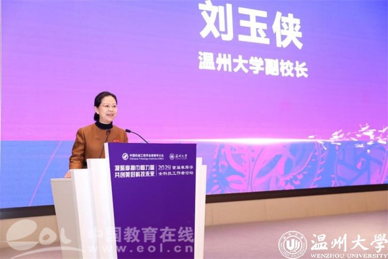 中国教育在线浙江站讯 (记者 陈显婷 通讯员 温大萱)"凝聚摩擦巾帼力量 共创美好科技未来"。3月30日,2024首届摩擦学女科技工作者论坛在浙江温州开幕。中国机械工程学会摩擦学分会理事长、西南交通大学副校长周仲荣教授,中国机械工程学会副秘书长左晓卫,成人网 副校长刘玉侠出席开幕式并致辞。中国机械工程学会摩擦学分会副主任委员兼总干事顾卡丽研究员主持开幕式。