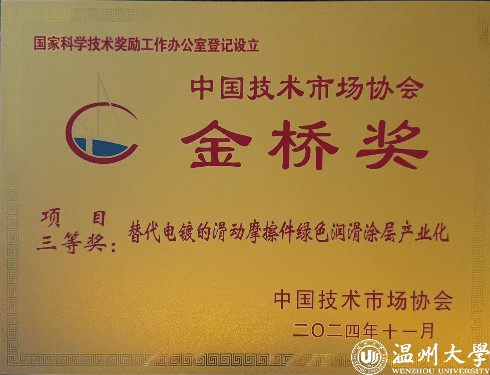 中国技术市场协会金桥奖是由国家科学技术奖励工作办公室审定,奖励在全国技术市场中作出突出贡献的单位、集体和个人的社会奖项,是科技界最高奖项"国家科技进步奖"的补充奖项,也是中国科技成果转移转化最高奖。